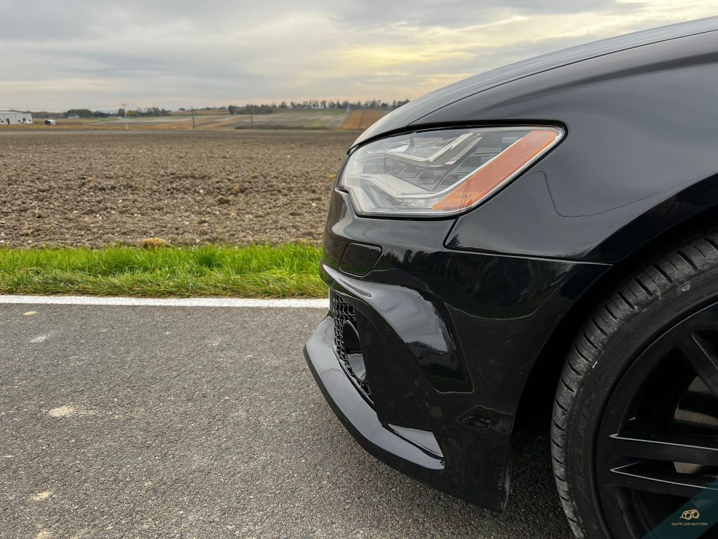Damian już na etapie zakupu samochodu miał bardzo ciekawe plany odnośnie modyfikacji wizualnych samochodu i powierzył nam w ramach przeprowadzonej naprawy instalację pakietu RS look, w skład którego wchodził kompletny zderzak przedni oraz dyfuzor tylny, a także instalację dokładek firmy Maxton, zmianę lamp tylnych na poliftowe oraz kompletny dechroming samochodu. Dodatkowo w ramach naprawy samochód przeszedł pełną konwersję na rynek europejski?
