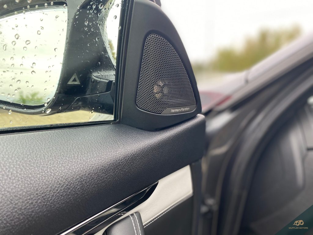 Agresywny przód, podkreśla zderzak z szerokimi wlotami, charakterystyczne nerki z podwójnymi pionowymi żebrami oraz lampy LED z ikonicznymi “Angel Eyes”, dzięki którym nie sposób pomylić tej marki z żadną inną w swoim wstecznym lusterku. Maska z wytłoczeniem na środku wprost wskazuje, że nie jest to podstawowa wersja, co również możemy poznać po obudowie lusterka oraz czterech końcówkach wydechu.