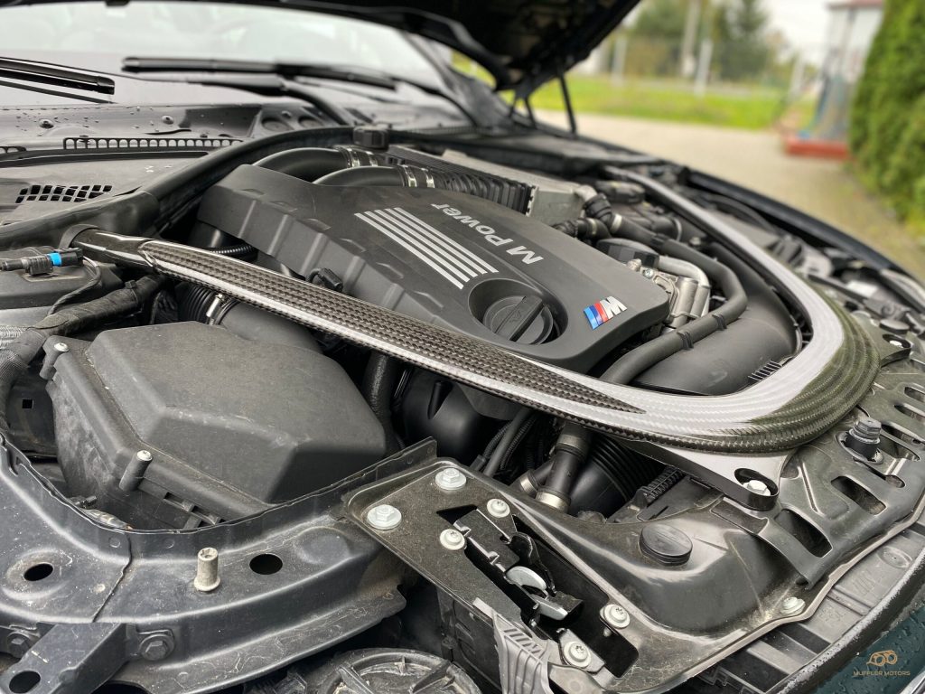 Prezentowany egzemplarz jest bardzo bogato wyposażony, na pokładzie znajduje się między innymi: podgrzewana kierownica, adaptacyjne zawieszenie M-sport, bezkluczykowy dostęp, kamera cofania, czujniki parkowania, podgrzewane fotele, adaptacyjne lampy LED ze spryskiwaczami, asystent pasa ruchu, wyświetlacz przezierny Head-UP display, nagłośnienie premium Harman Kardon, nawigacja professional. Znajdziemy również wiele elementów wykonanych z karbonu takich jak dach, rozpórka kielichów oraz liczne elementy dekoracyjne we wnętrzu.