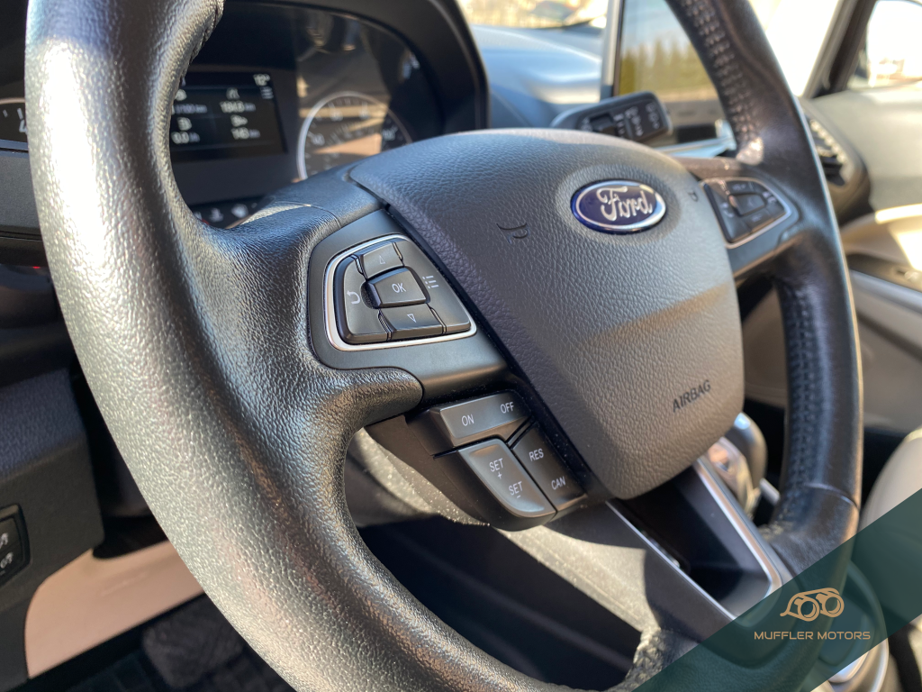 Zakupiony dla Pana Marcina samochód sygnowany jest wersją wyposażenia Titanium. Wewnątrz auta jest bardzo ergonomiczne i estetyczne. Za rozrywkę podczas jazdy odpowiedzialny jest bowiem system multimedialny SYNC 3, pozwalający na integrację telefonu za pośrednictwem Apple Carplay bądź Android Auto. Egzemplarz Pana Marcina dodatkowo wyposażony jest m.in. w wentylowane i podgrzewane skórzane fotele przednie, wielofunkcyjną skórzaną kierownicę oraz szyberdach.